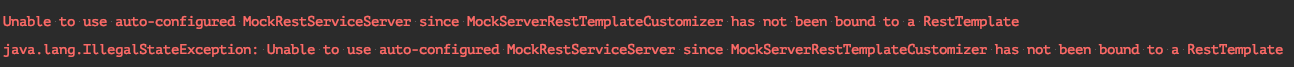 RestTemplate을 사용하지 않고 @RestClientTest를 쓰는 경우 아래와 같은 에러를 마주하게 된다.