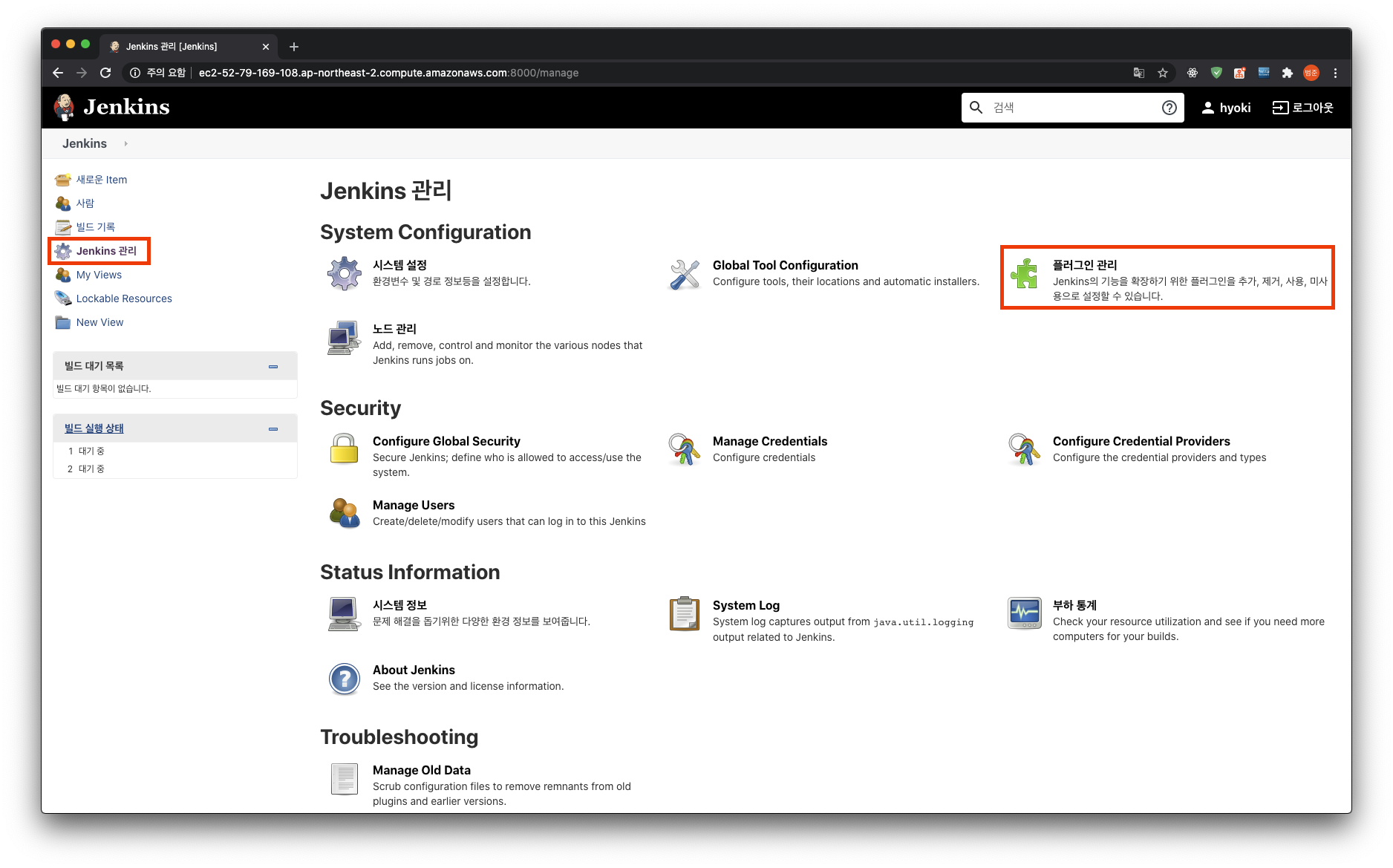 계정 설정이 끝났다면 플러그인 관리로 들어간다.