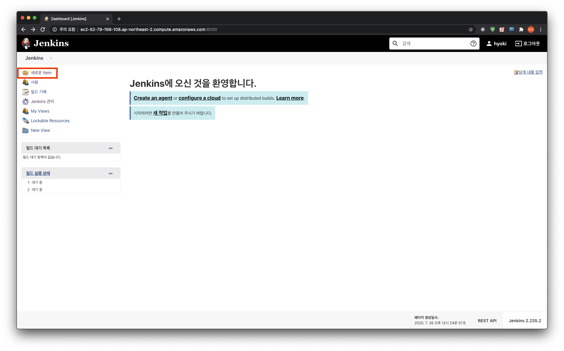 이미지를 받아올 때 주의할 점은 jenkins:lts가 아닌 jenkins/jenkins:lts를 받아와야 하는 점이다. jenkins:lts는 관리가 안되는 옛날 버전이라 진행이 불가능하다.