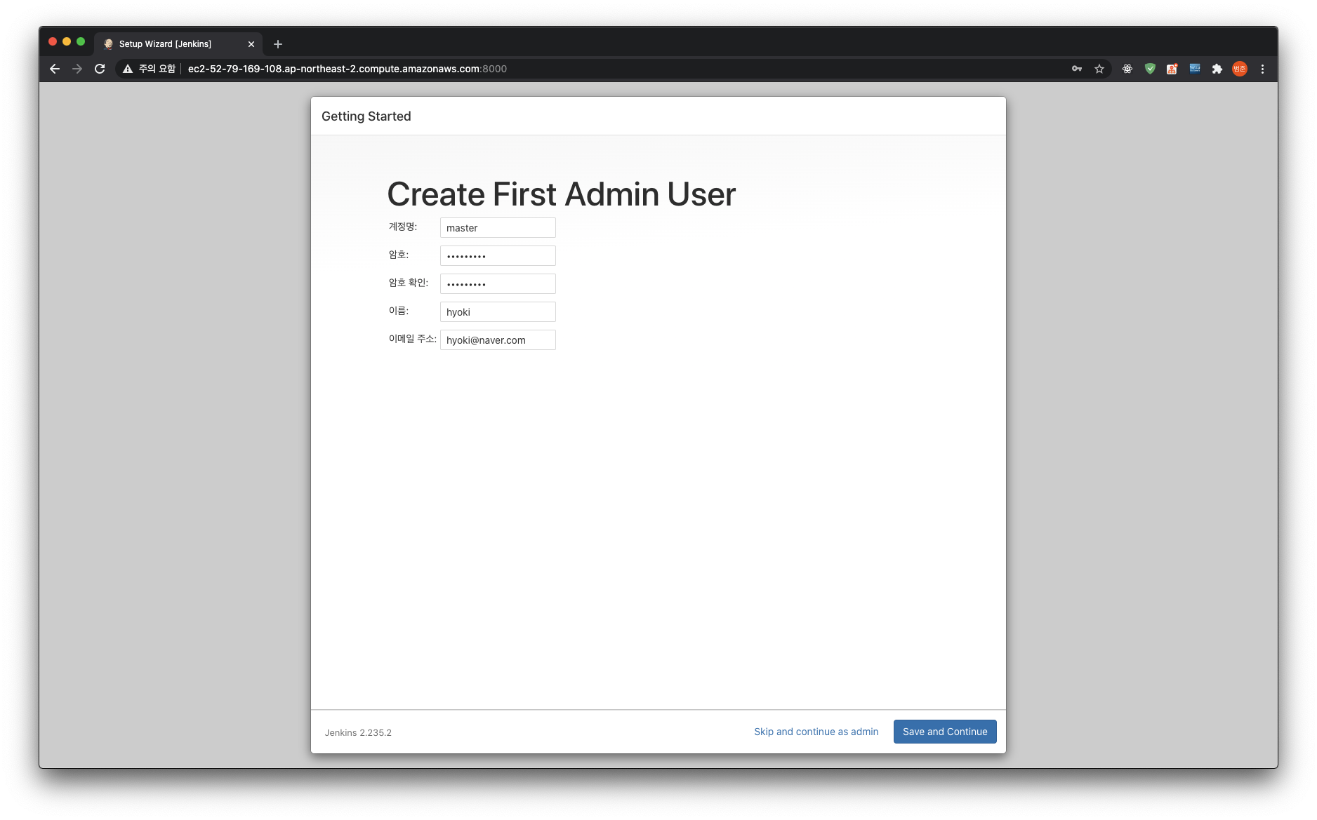 플러그인 설치가 모두 완료됐다면 적당히 칸을 채워주고 넘어가면 된다.