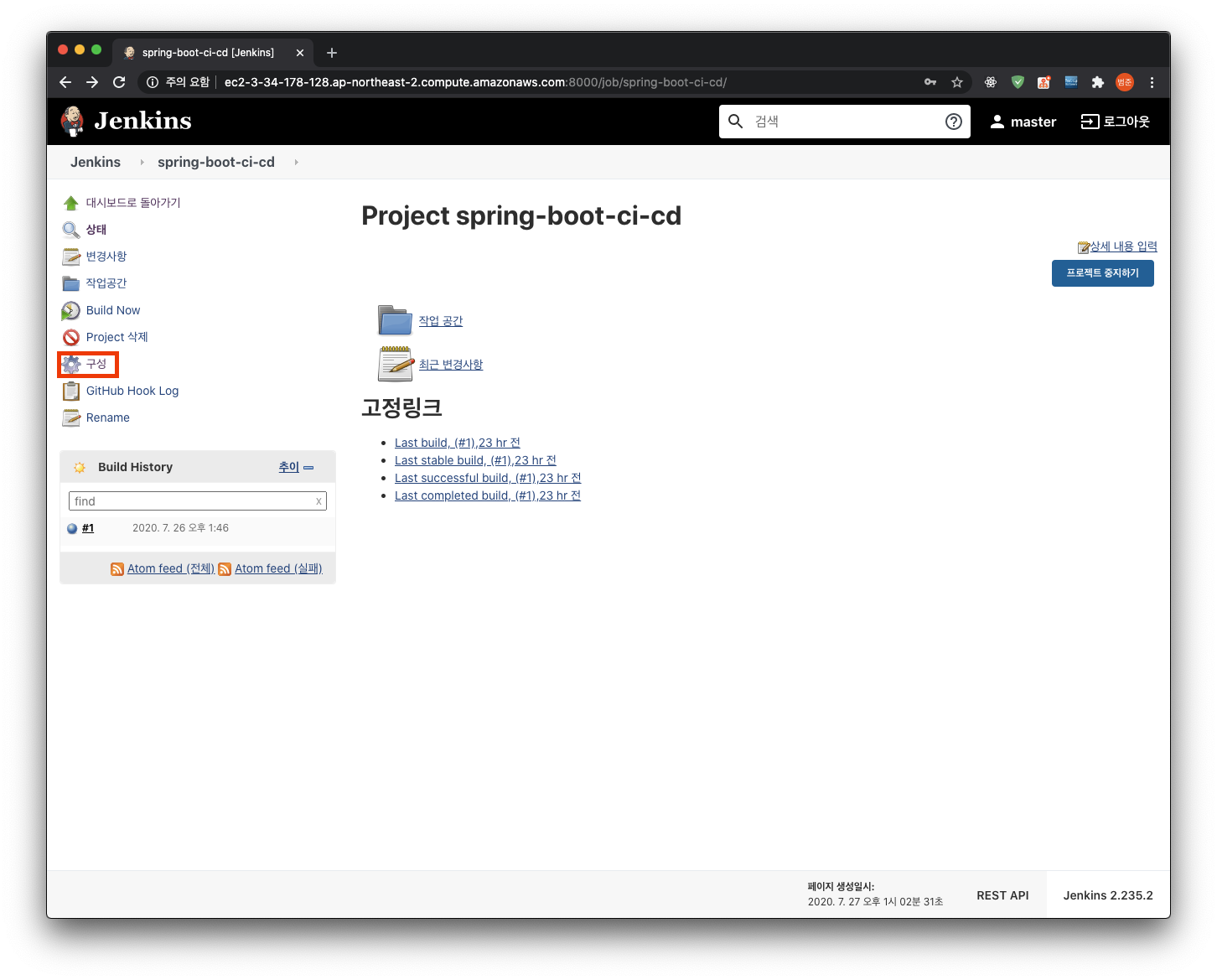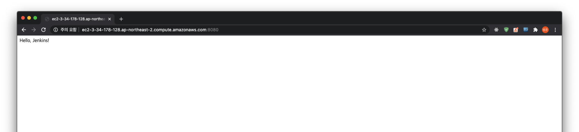 jenkins 컨테이너와 spring 컨테이너가 실행중임을 확인할 수 있다. 이제 외부에서도 ec2 주소를 통해 접근할 수 있다.